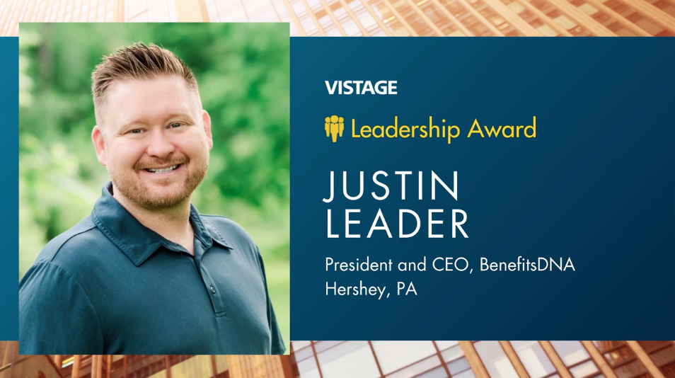 Justin Leader, founder and CEO of BenefitsDNA, has been named a recipient of the 2026 Vistage Leadership Award, one of the most respected recognitions in the CEO peer advisory community. The award was presented on March 17, 2026, at the Vistage South Central PA Executive Conference in Lancaster, PA.